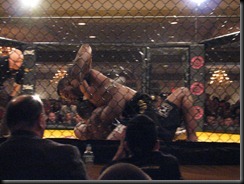Rd 2: Dyrell gets a nice body shot in but Felix makes him pay with a slamming takedown. Felix then takes the back but Dyrell rolls out and Felix ends up getting full mount. He tries to lay some more GNP but Dyrell rolls out again and Felix takes the back. He throws some nasty elbows to the side of the head. The rest of the round is all Felix just throwing massive shots to the sides of the face of Dyrell. The round ends and as they get up even from way in the back I could see Dyrell’s eye is swollen shut. Sure enough the doctor checks it out and says Not In My House and stops the fight.