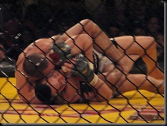 Rd 3: Both fighters are pretty exhausted. Mario looks more so. Gonzales has been through wars though, very tough SOB. Mario goes for a superman punch but it mostly misses. Javier clinches and pushes Mario up against the cage. Gonzales is taking more brutal shots from Javier. They eventually break and Mario fires some wild haymakers that most of em miss. The 10 second sound goes off and they all start banging. An all out war. The round ends and Mario’s face has blood everywhere. Great fight.